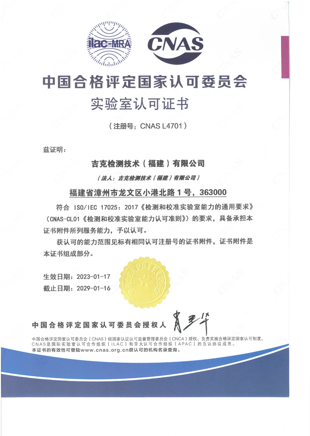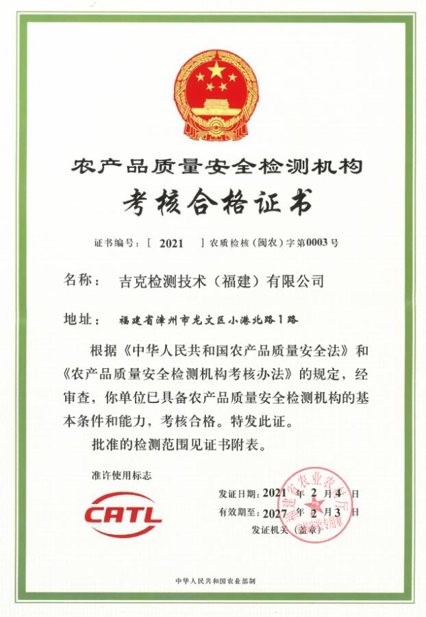 吉克檢測技術(福建)有限公司,位于福建省漳州市龍文區(qū)小港北路1號,于2019年8月注冊成立,是一家獨立的第三方檢測公司。公司已經通過檢驗檢測機構計量認證(CMA)、農產品質量安全檢測機構資質認證(CATL),獲得中國合格評定國家認可委員會(CNAS)認可。公司本著“嚴謹、規(guī)范、高效、協作”的原則和對客戶及社會高度負責的精神,充分利用本公司優(yōu)質的檢測環(huán)境、先進的檢測設備和專業(yè)的技術人員,第一時間為客戶提供科學、公正、準確的檢驗檢測報告。       公司實驗室面積1100多平方米,儀器設備兩百多臺(套),固定資產一千多萬元,在職員工31人,技術人員中的中高級職稱及同等能力人數占60%以上。我們的服...